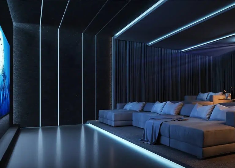 Experiência e Tecnologia em Home Cinema com imagens e som.