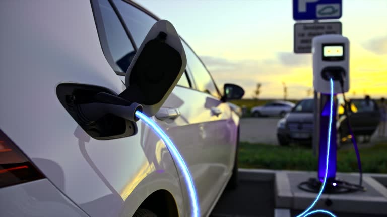 Tecnologia avançada em instalação de estação de recarga para carros elétricos, associados á automação.